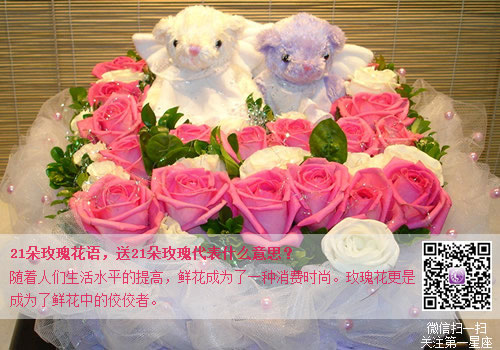 21朵粉玫瑰象征—— 真诚的爱!世界上最纯洁的爱!